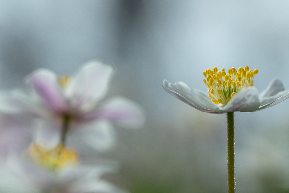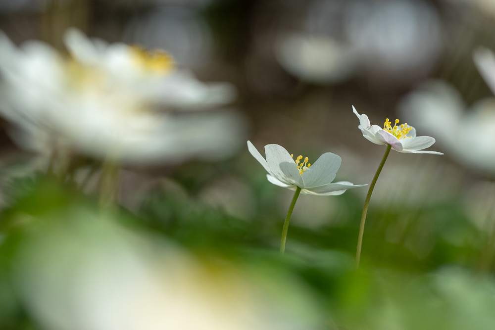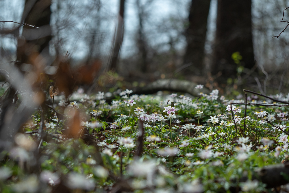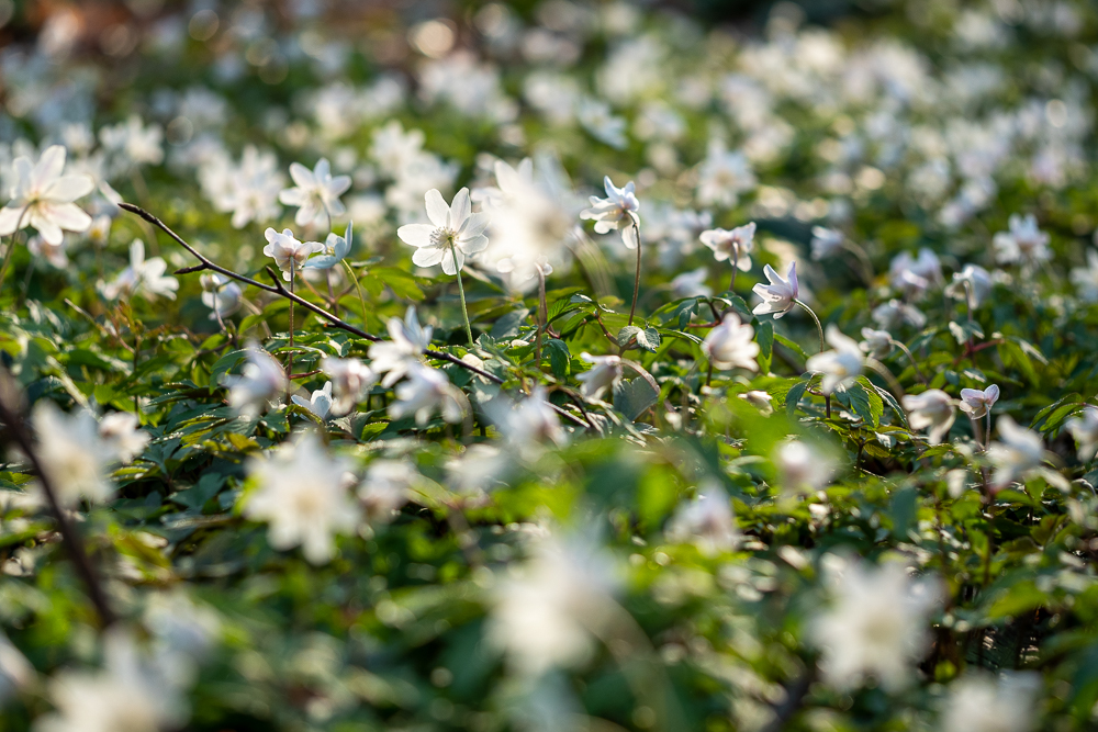 "Alle Jahre wieder erfreut das Buschwindröschen (Anemone neorosa) das Auge des Waldspaziergängers mit dichten weißen Blütenteppichen. Besonders in Laub- und Nadelwäldern trifft man den in Europa und Asien heimischen Frühblüher an. Diese Anemonen-Art ist wie die früh blühenden Zwiebel- und Knollenpflanzen ein Geophyt - das heißt, sie treibt im Frühling rasch aus, hat aber schon im Frühsommer ihren Wachstumszyklus beendet und zieht sich wieder in die Erde zurück. Mit dieser cleveren Strategie nutzt die winterharte Staude den Zeitraum, in dem die Baumkronen noch viel Licht durchlassen, optimal aus. Der Name Buschwindröschen kommt wahrscheinlich daher, dass die Blütenblätter ihr leicht vom Wind mitgerissen werden." (hier abgeschrieben)